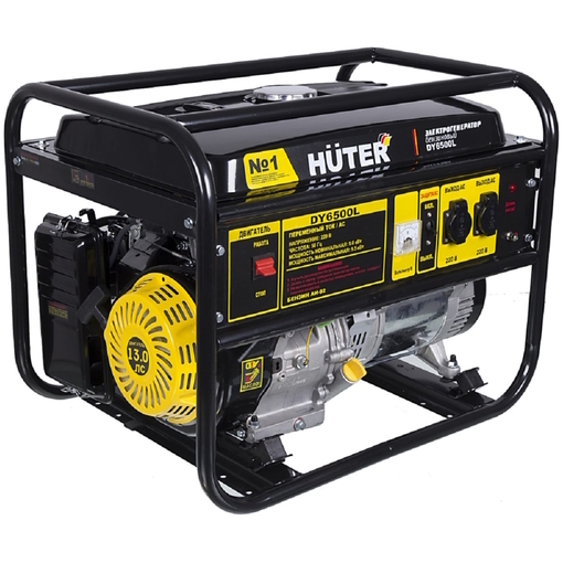 Бензиновый электрогенератор Huter DY6500L способен выдавать ток мощностью до 5.5 кВт и напряжением 220 В для питания строительного оборудования, инструмента, осветительных систем. Обладая серьезной мощностью, он может использоваться на турбазах, в туристических лагерях, в отдаленных районах, лишенных централизованного электроснабжения. Кроме двух розеток с однофазным током 220 В он получил клеммы на 12 В, удобный для питания различного автомобильного электрооборудования.