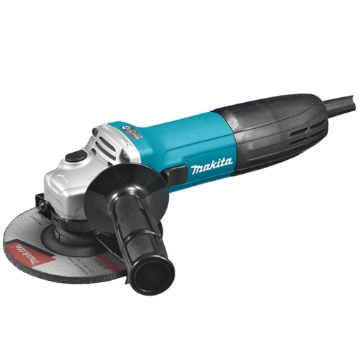 Достойная внимания углошлифовальная машина Makita GA5030 отличается миниатюрными размерами в сочетании с мощностью 720 Вт. Якорь и статор модели покрыты специальным лаком, который предотвращает попадание пыли внутрь механизмов. Инструмент оснащен блокировкой шпинделя, что позволяет проводить замену оснастки в считанные минуты. Пуск фиксируется во включенном состоянии, что особенно удобно при продолжительных работах. Болгарка GA5030 выделяется своим эргономическим дизайном.