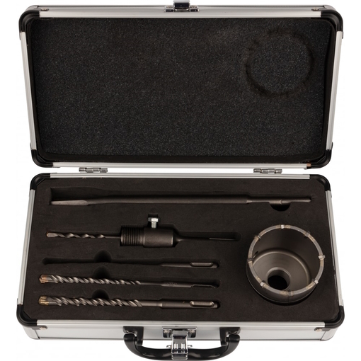 Набор для установки подрозетников KRANZ SDS PLUS, 68 мм, 5 предметов в кейсе KR-91-0431 применяется для перфораторов с типом крепления SDS PLUS для установки подрозетников, а также при долбежных и демонтажных работах по кирпичной кладке, бетону, природному и искусственному камню.